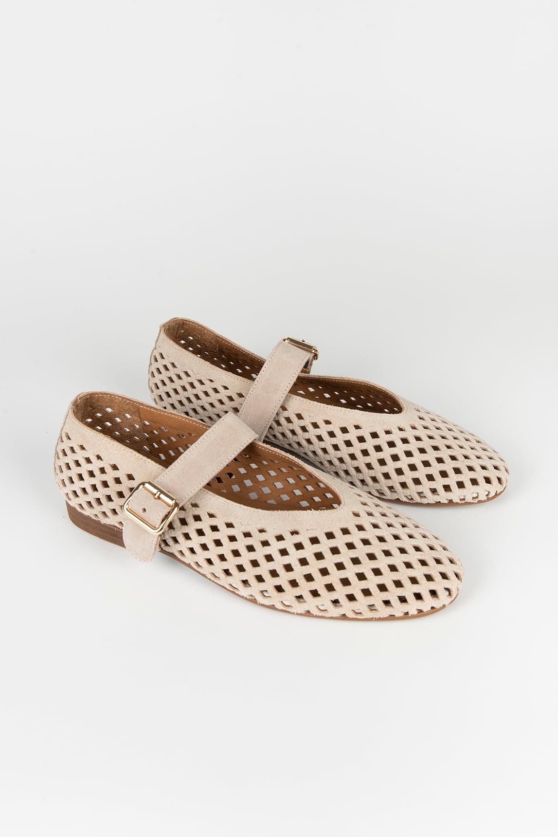 The Buco raw Mary Jane combines a classic design with a contemporary finish thanks to its openwork fabric, which adds lightness and texture to the overall look. Its sleek silhouette gently molds to the foot, creating an elegant and comfortable shoe for everyday wear.