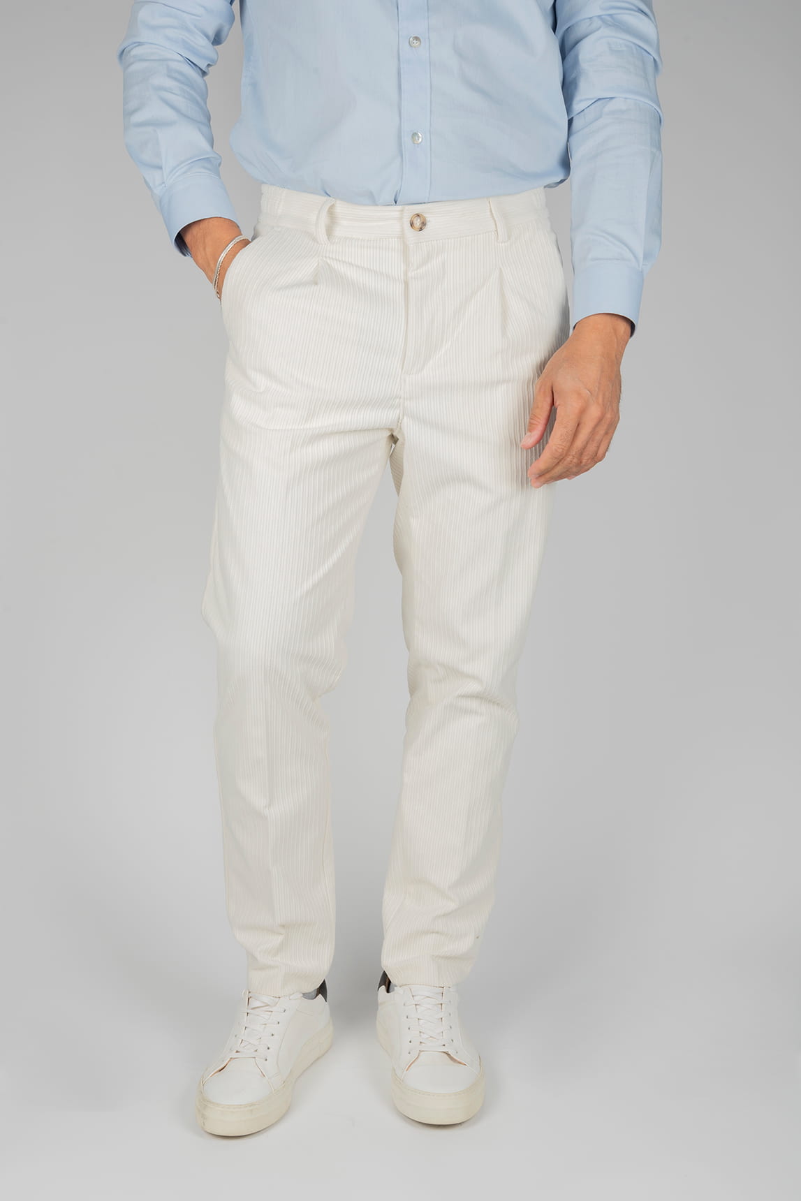 The ecru Galway pants are a must-have for those seeking elegance and versatility. Their soft corduroy fabric and classic cut make them a perfect choice for both casual and more refined looks. Pair them with shirts, sweaters, or jackets to create balanced and timeless outfits this season.