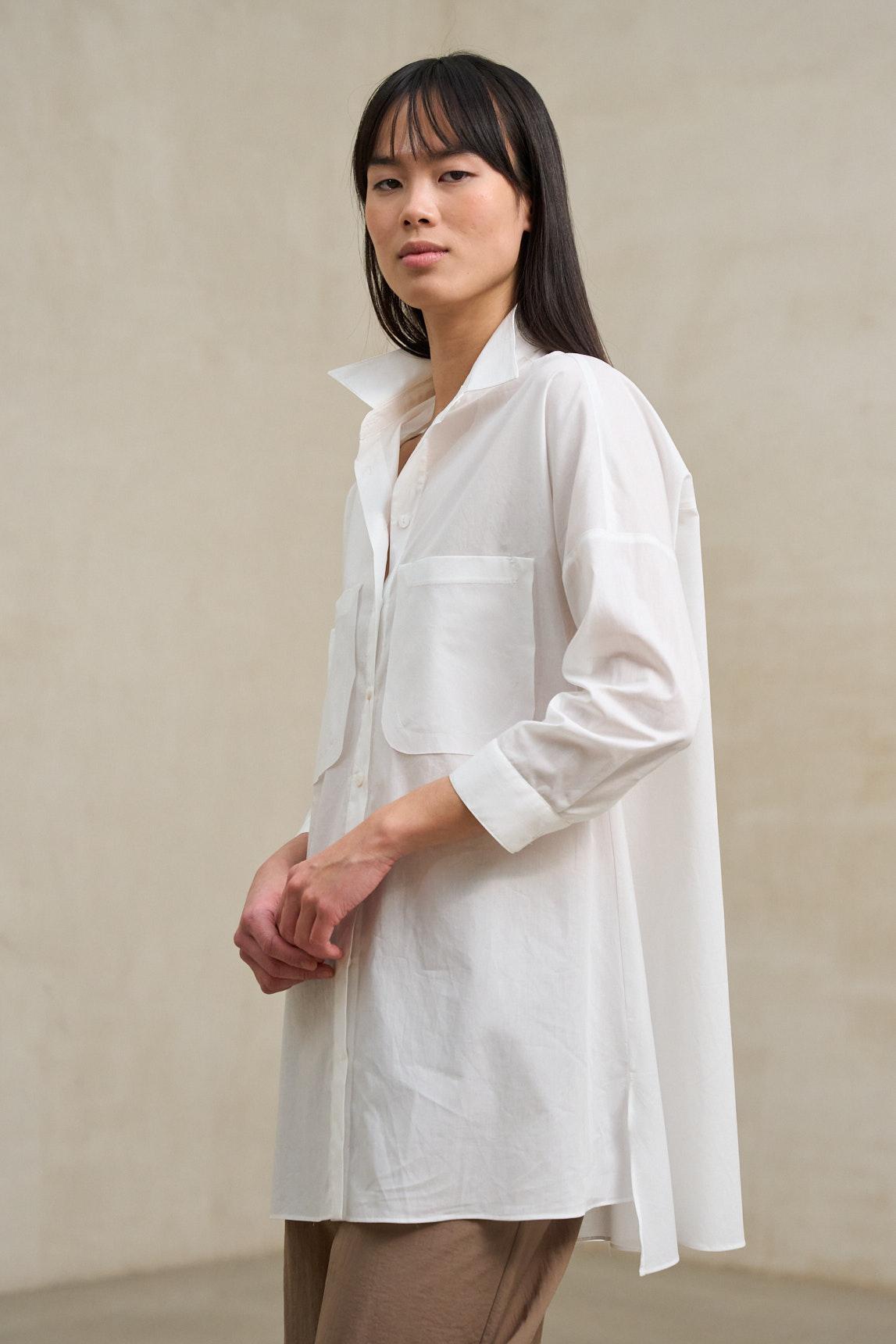 El blanco aporta luminosidad y frescura, funcionando como base esencial para estilismos neutros o contrastes más marcados con negro, camel o verde oliva. Es una prenda pensada para el día a día, ideal para oficina relajada, viajes o conjuntos minimalistas con carácter. Una camisa atemporal que equilibra sencillez, estructura suave y elegancia natural.