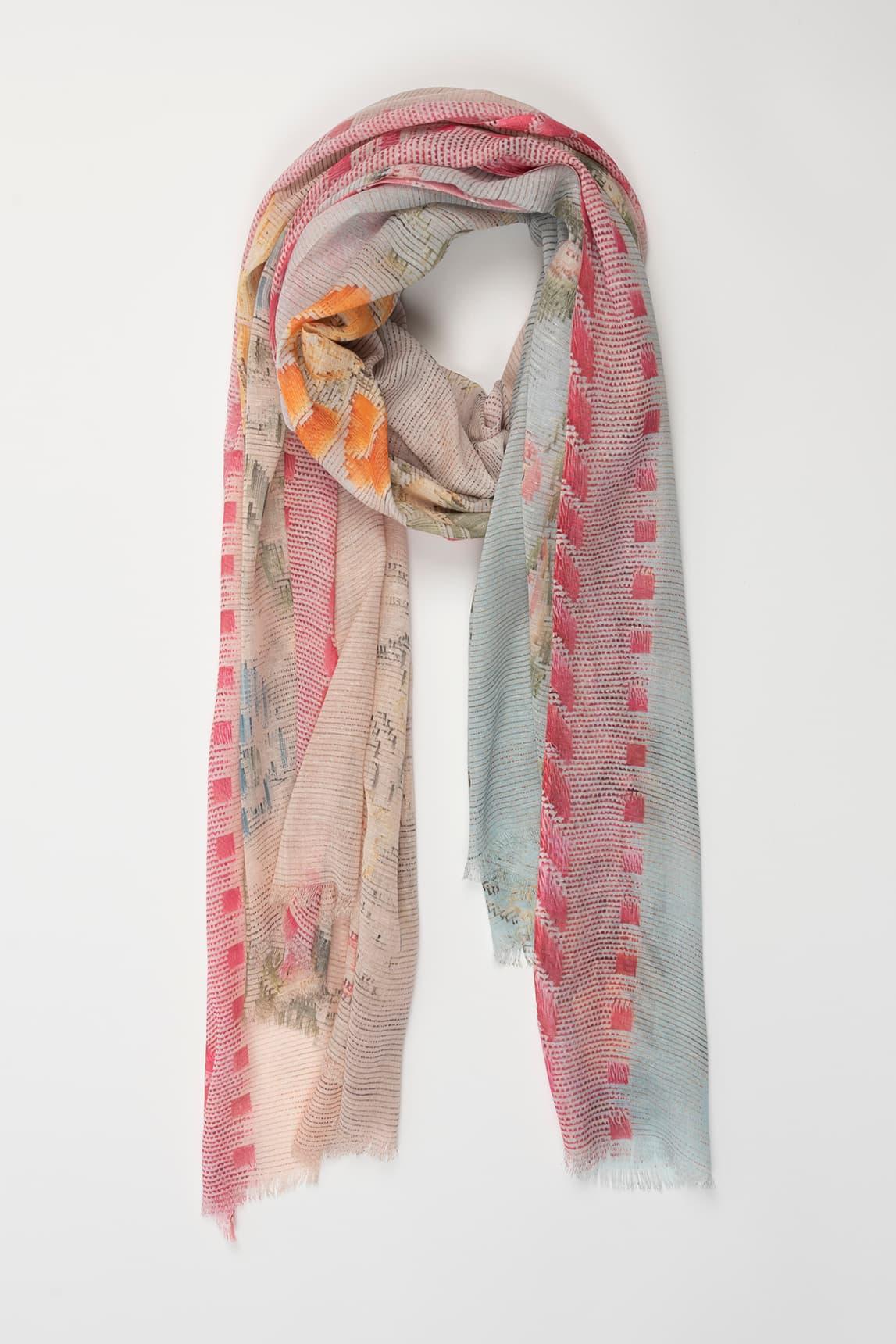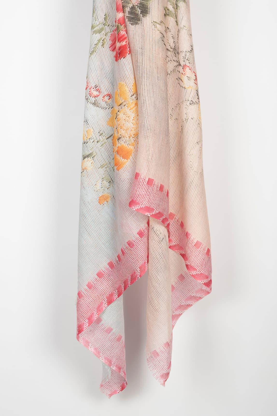 Fular de mujer confeccionado en una mezcla natural de 60 % algodón, 20 % modal y 20 % lino. Su tejido ligero y transpirable ofrece una textura suave y un acabado ligeramente estructurado. Presenta un estampado floral en tonos rosados, amarillos y verdes sobre base clara, enmarcado por un borde con detalles geométricos que aportan contraste y equilibrio. El Fular Dalia floral combina la frescura de las fibras naturales con un diseño luminoso y femenino. Ideal para complementar looks de primavera o verano, puede llevarse al cuello, sobre los hombros o anudado al bolso, aportando color y elegancia de manera sutil. Nos esforzamos por mostrar los colores de la forma más fiel posible, pero pueden variar ligeramente respecto a la realidad.