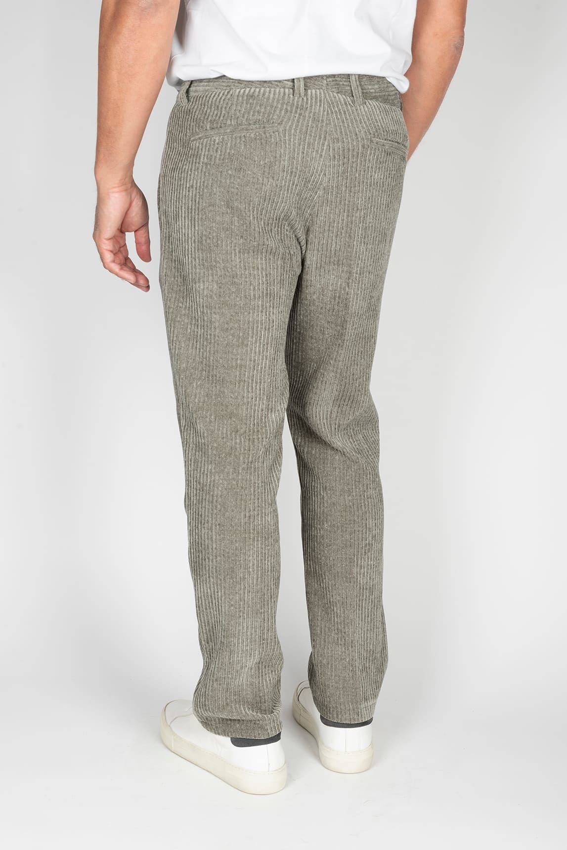 Un pantalón cómodo y con textura que eleva el look casual de invierno. Las pinzas aportan caída y holgura en la parte superior, mientras el canalé ancho de la pana suma carácter. Llévalo con jersey y deportivas o con camisa y americana para un smart-casual relajado.
