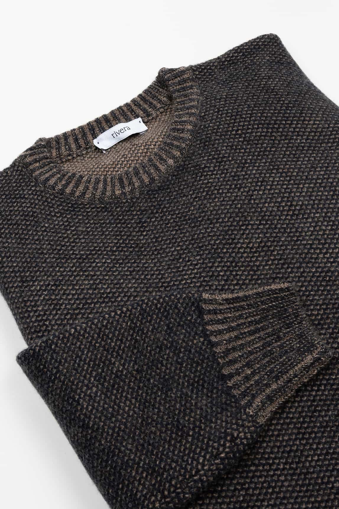 - Jersey de punto bicolor en tonos marrón y negro.