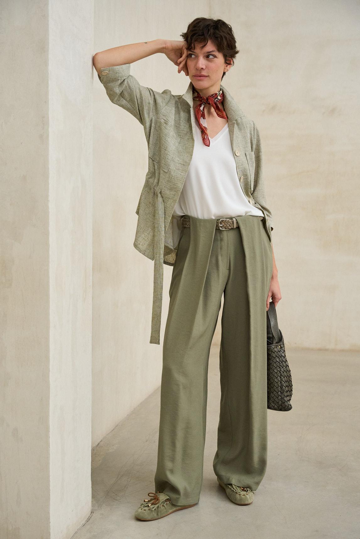 El tono pistacho aporta frescura y un matiz suave de color, perfecto para combinar con prendas en tonos neutros, arena, crudos o blancos. Un mocasín con carácter que añade un toque natural y sofisticado a cualquier estilismo.