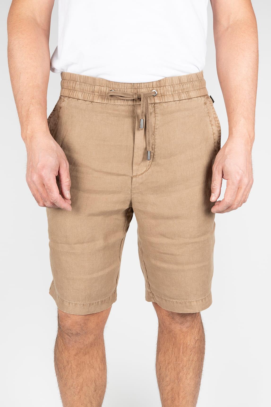 Esta bermuda en tono camel presenta una estética cálida y equilibrada, con largo por encima de la rodilla y una silueta recta que favorece la comodidad diaria. La cintura elástica con cordón ajustable se muestra de forma visible, aportando un carácter funcional y desenfadado, mientras los bolsillos laterales y el frente limpio mantienen una imagen ordenada. El tejido de apariencia ligera y textura suavemente natural ofrece una caída fluida que acompaña el movimiento con naturalidad.