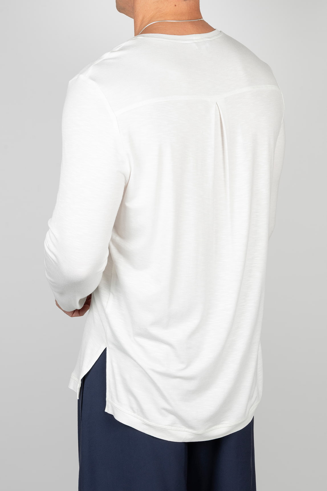 Esta camiseta de manga larga es una prenda esencial reinterpretada con detalles cuidados. Su tejido ligero y su silueta equilibrada la convierten en una opción versátil para el día a día, perfecta tanto para llevar sola como bajo una chaqueta o sobrecamisa. Ideal para un estilo relajado pero pulido, combinada con pantalón chino, denim o sastrería informal.