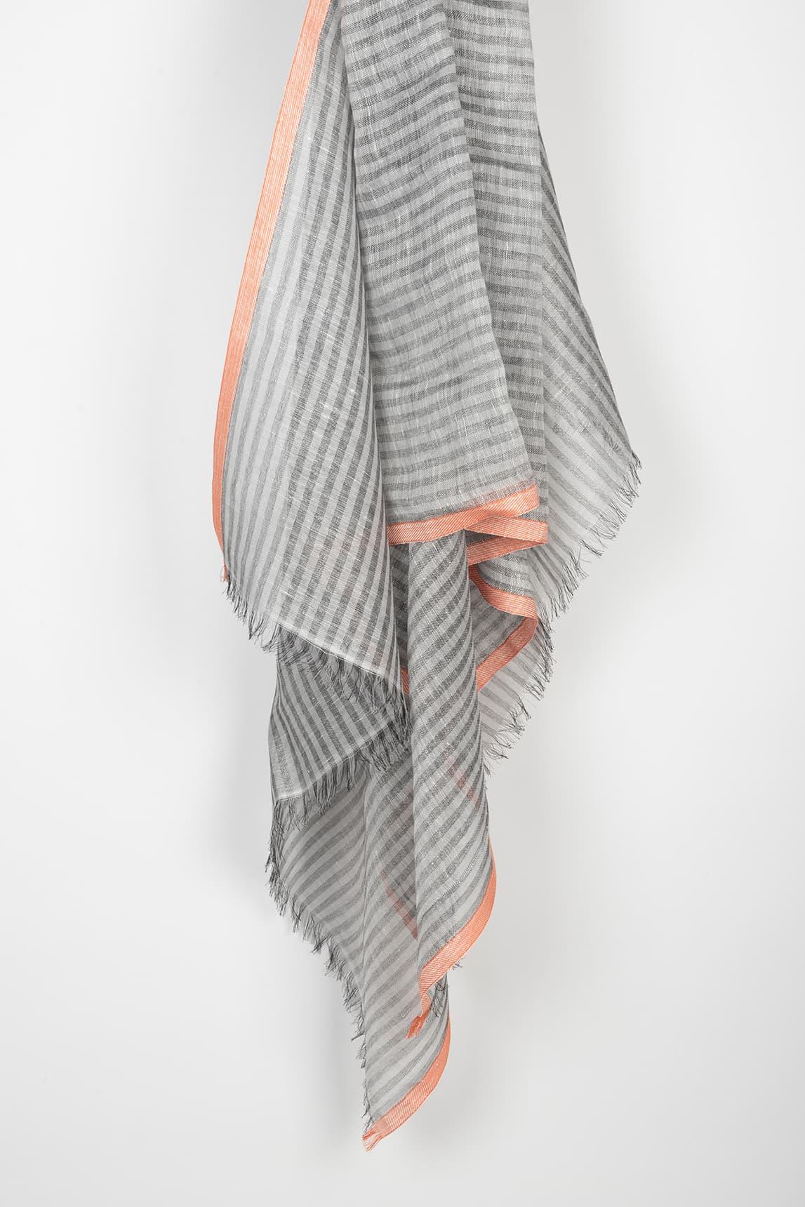 Fular de mujer confeccionado en una mezcla natural de 53 % algodón y 47 % lino. Su tejido ligero y transpirable presenta un diseño de rayas finas en gris y blanco con un delicado borde en tono coral que aporta contraste y un acabado distintivo. Los extremos deshilachados refuerzan su carácter artesanal y relajado. El Fular Lira gris combina la frescura del lino con la suavidad del algodón, ofreciendo una textura agradable y versátil ideal para los meses de entretiempo. Su diseño equilibrado y su toque de color lo convierten en un complemento perfecto para elevar looks neutros o naturales. Nos esforzamos por mostrar los colores de la forma más fiel posible, pero pueden variar ligeramente respecto a la realidad.