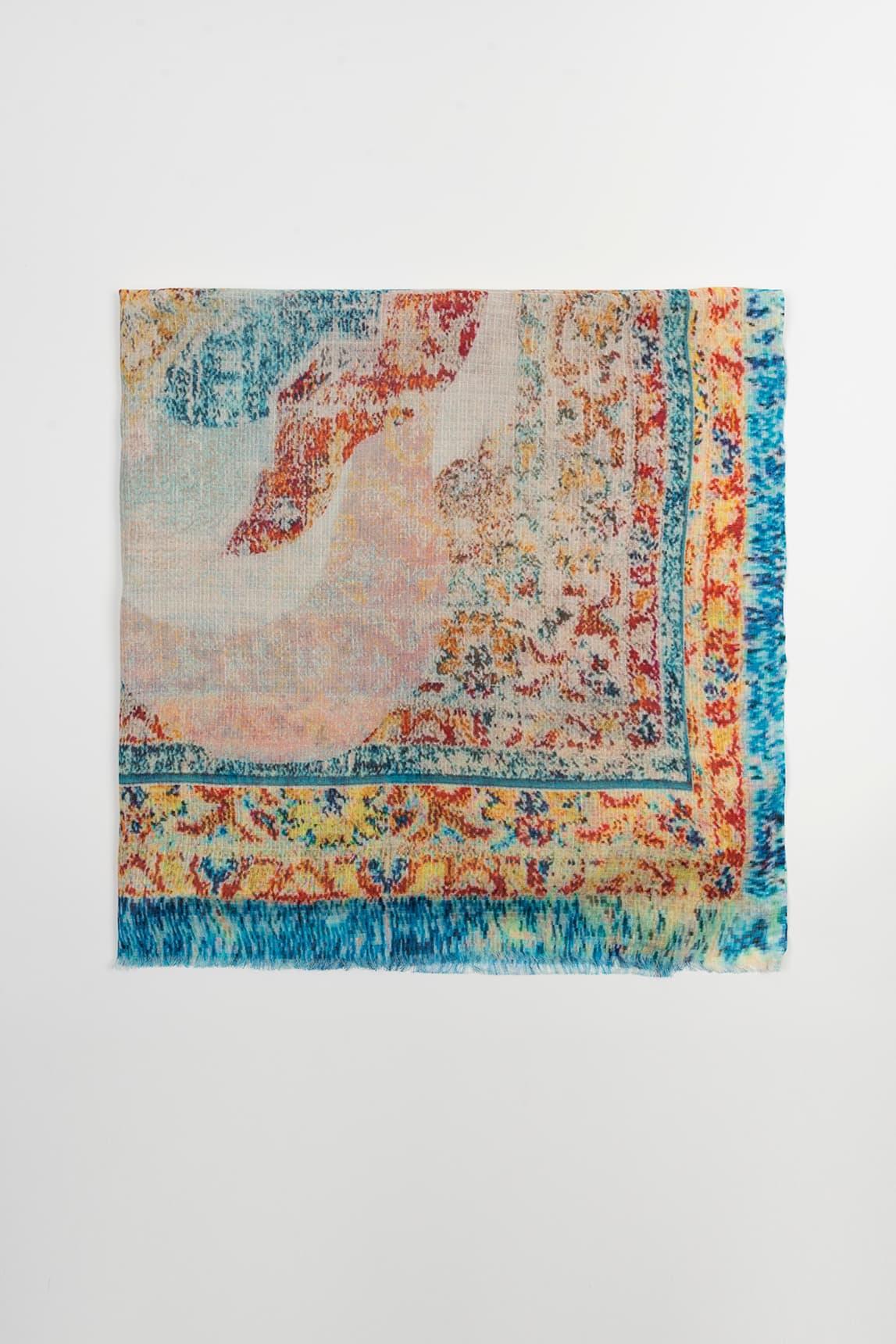 Fular de mujer confeccionado en 100 % algodón con tejido ligero y suave de textura natural. Presenta un estampado ornamental en tonos azul, ocre y coral con bordes enmarcados que aportan contraste y un aire artesanal. Los extremos deshilachados refuerzan su carácter relajado y fresco. El Fular Sira azul combina comodidad, color y estilo en una pieza versátil ideal para los meses de primavera y verano. Su diseño vibrante aporta personalidad a conjuntos neutros y se adapta fácilmente a looks casuales o más elaborados. Nos esforzamos por mostrar los colores de la forma más fiel posible, pero pueden variar ligeramente respecto a la realidad.