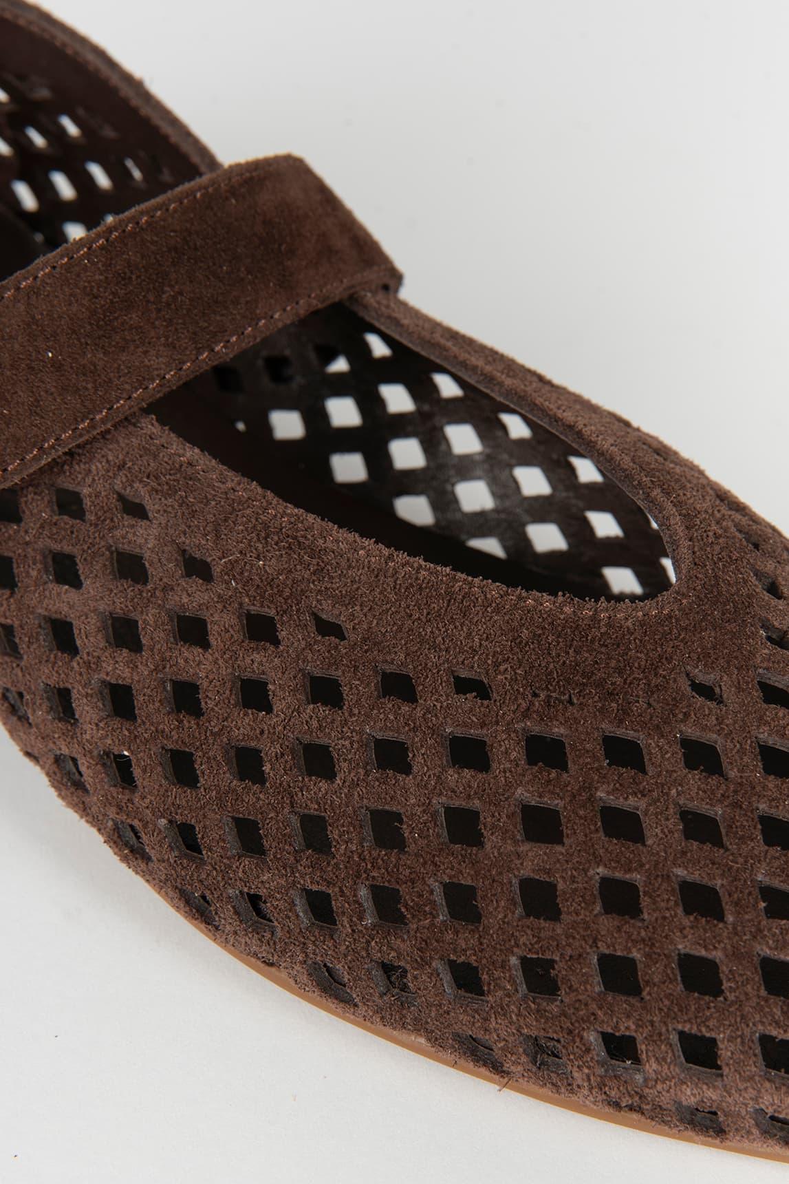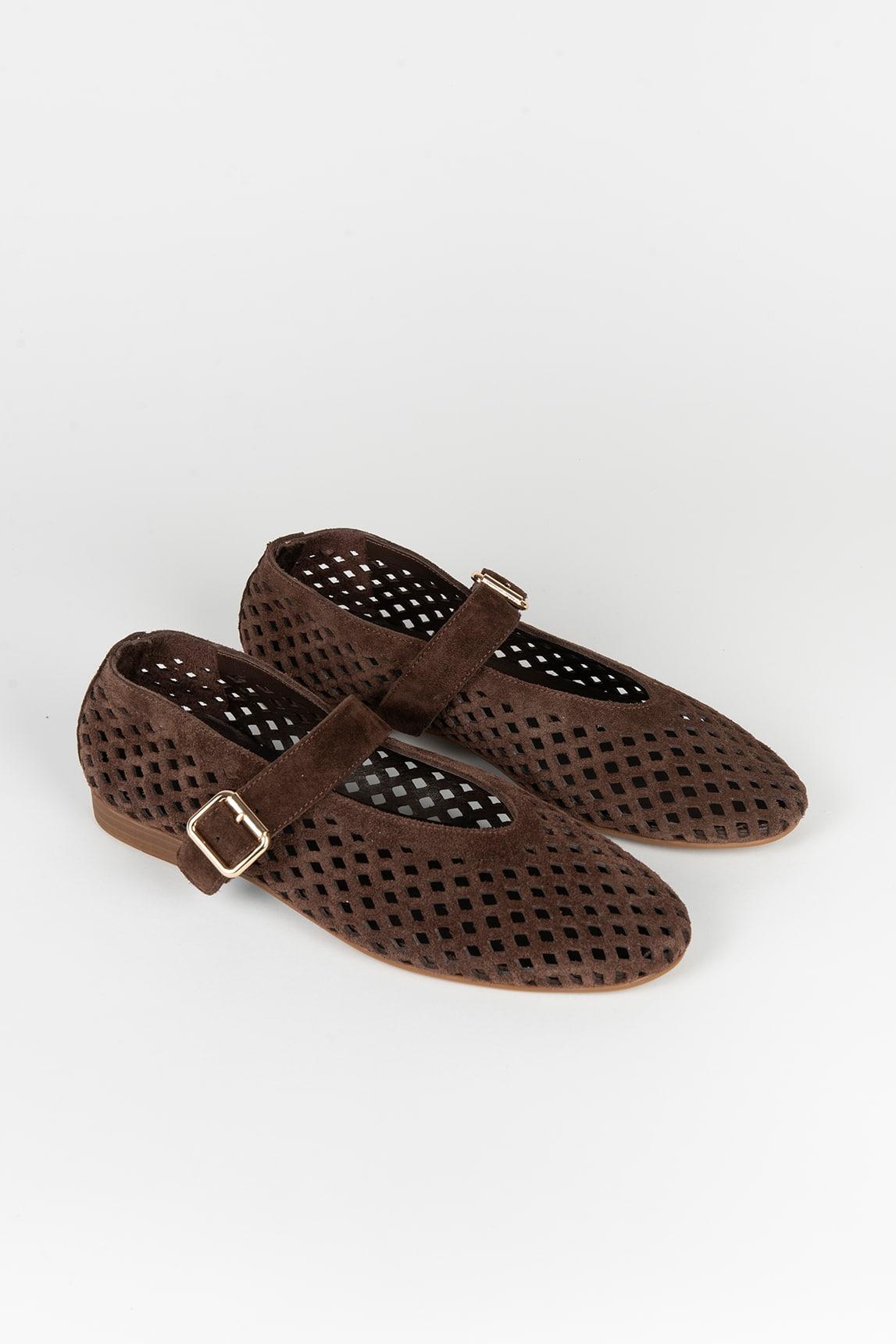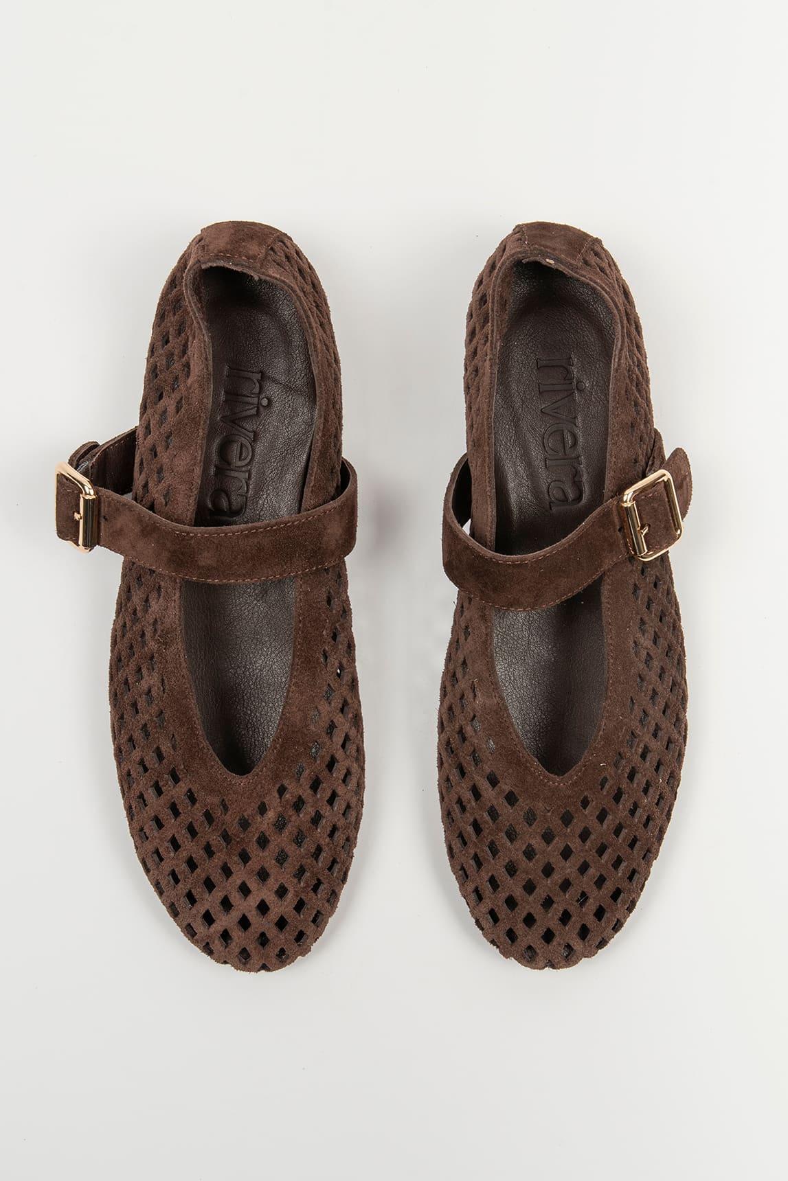 La mercedita Buco marrón combina un diseño clásico con un acabado contemporáneo gracias a su estructura calada que aporta ligereza y textura al conjunto. Su silueta estilizada se adapta suavemente al pie, creando un calzado cómodo y femenino ideal para el día a día.